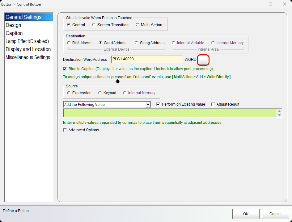 In each widget's property page, the device's address space can be configured.