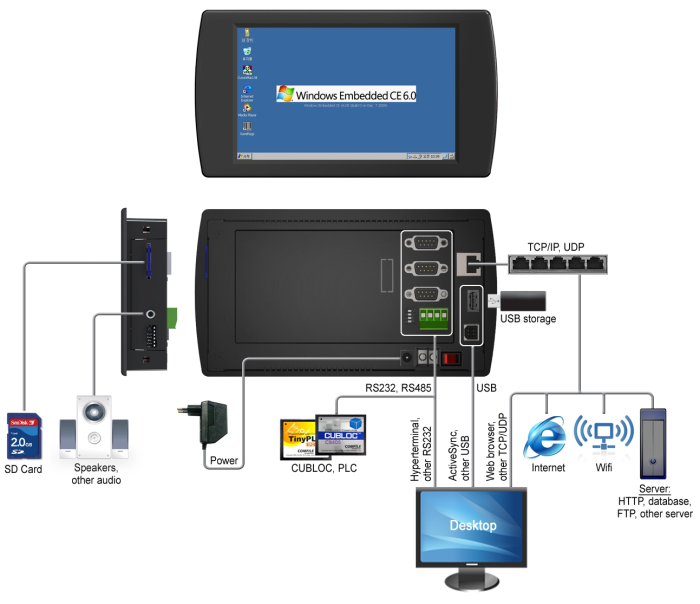 Windows CE panel PCs (also known as the CUWIN series) provide a more affordable alternative to Windows-based desktop panel PCs, while still offering sufficient performance and functionality to build professional user interfaces in a compact form factor.