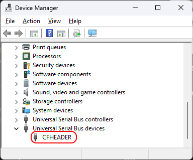 By default, Linux does not give ordinary users direct access to USB devices. That will result in errors when attempting to communicate with the CFHEADER module without elevated privileges. To give access to USB devices for ordinary users, create a file named /etc/udev/rules.d/99-usb.rules with the following contents: