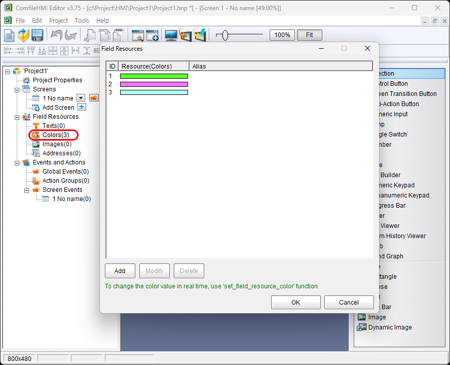 Press the Add button to add new color resources.