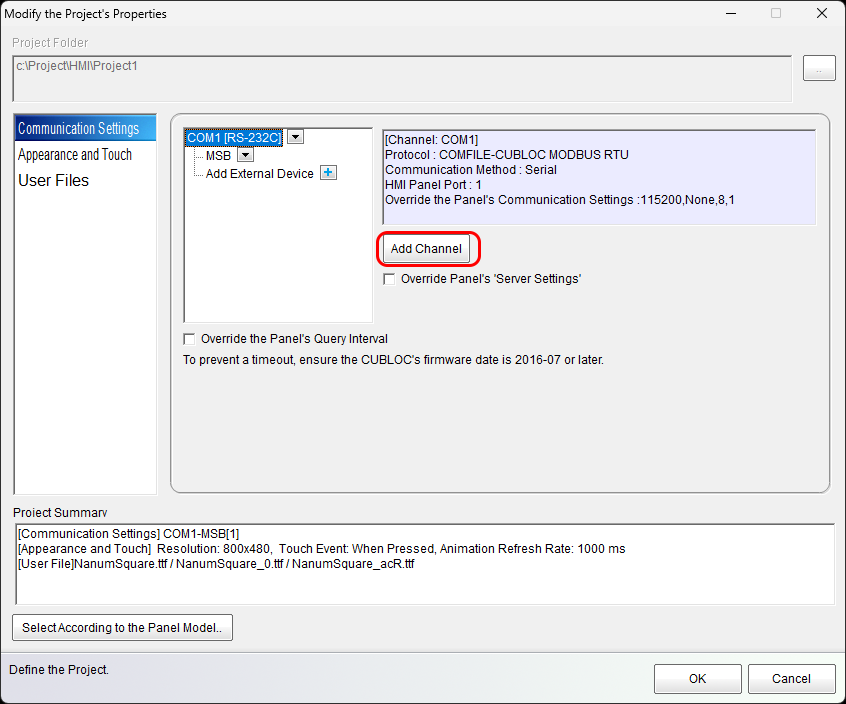 3. Override the Panel's Timeout Setting - Use the project's communication timeout settings instead of the panel PC's timeout settings.