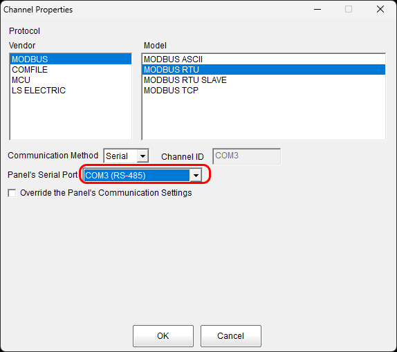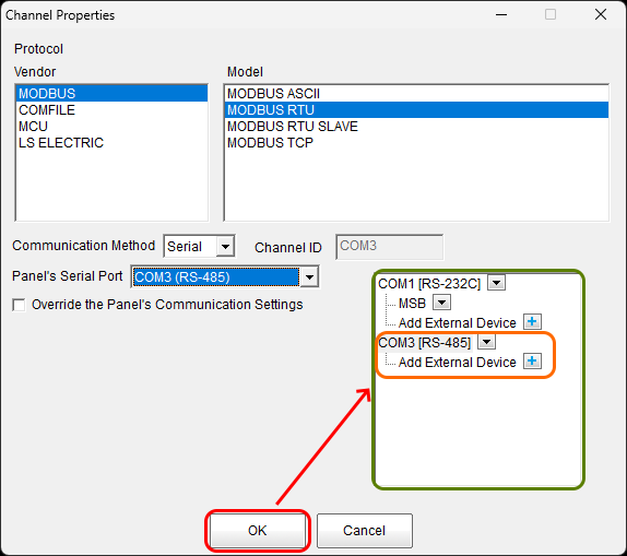 - Select the MODBUS option for general 3rd party Modbus PLCs