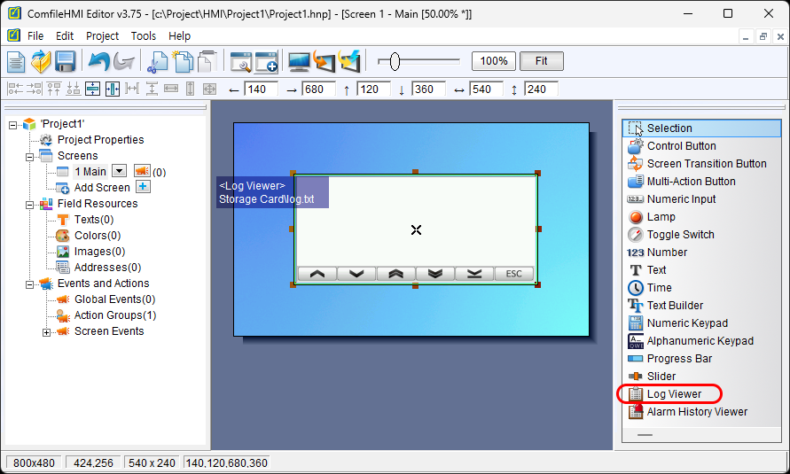 The Log Viewer widget can be used to display the contents of a file in on the HMI screen.