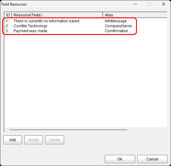 Text resources are used to store frequently used text strings in a central location that can be referenced, by number, either explicitly, or with variables and expressions.