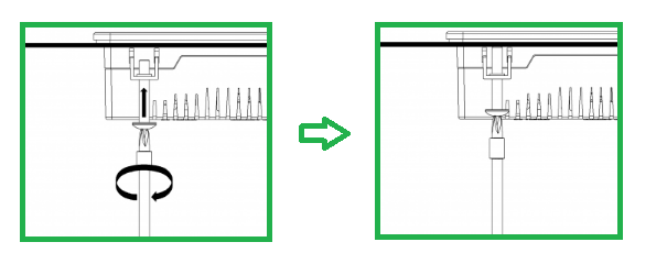 2. Insert the brackets into the bracket mounting holes as shown in the image below, pulling the bracket back to lock it into place.