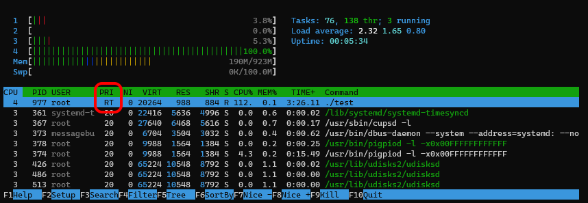 sudo chrt -f -p 99 `pidof test`