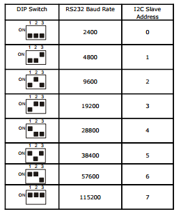 On the back of the GHB3224C, there are DIP switches to set the RS232 baud rate and I2C slave address. GHB3224C DIP Switch number 4 is not used.