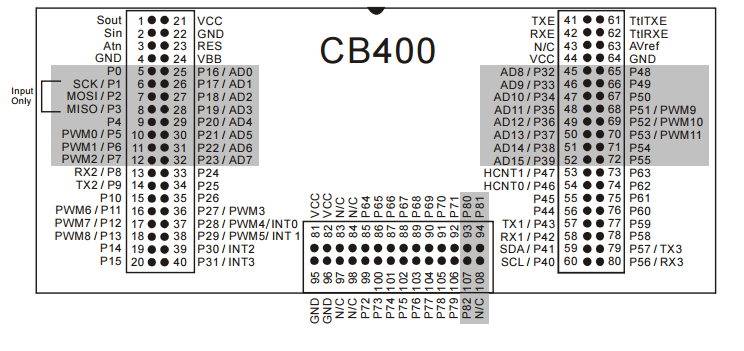 | P19 | 28 | I/O | AD CHANNEL 3 |