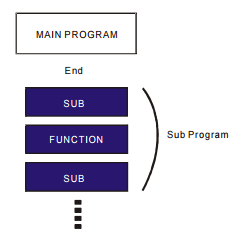 By placing A=A+1 in a function, the user will be able to separate one big program into small manageable pieces. As you can see here, the main program ends at the End command, and functions are added afterwards.