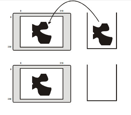 This command pops a screen from stack and displays it on the specified layer at coordinates x,y. The logic parameter specifies how the popped screen should be combined with the data currently displayed on the specified layer.
