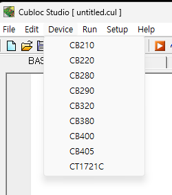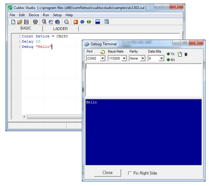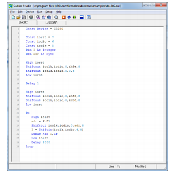 | Download & Run | Compile BASIC and Ladder Logic, download to Cubloc module if there are no errors, and restart the program automatically. To disable automatic restart, please go to Setup→Studio Option to change. |