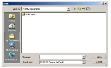When opening a file, you will only see .CUL files. (.CUB files are not displayed, but they are in the same folder). When you open a .CUL file, Cubloc Studio automatically opens CUB file.