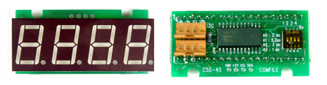 The CSG module is a 4 digit seven segment LED module that can be connected via CUNET or the I2C interface to display numbers and custom characters.