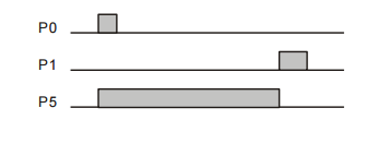 On the first rung in the example below, SETOUT will turn P5 ON when P0 turns ON, and will hold P5 ON even if P0 turns OFF. In the second rung of the example below, RSTOUT will turn P5 OFF when P1 is ON, and will hold P5 OFF even when P1 turns OFF.