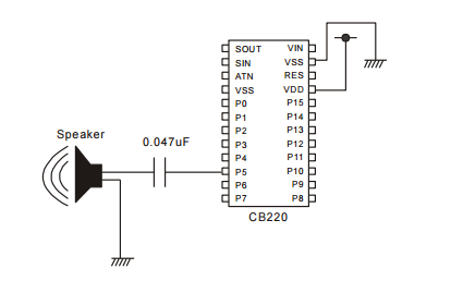 The example above shows the CB220's PWM channel 0 of CB220 being used with the FreqOut command to produce a sound.