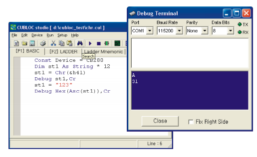 Dim ST1 As String * 12 ST1 = "CUBLOC" Debug Dec Len(ST1) ' 6 is printed since there are 6 characters in ST1.