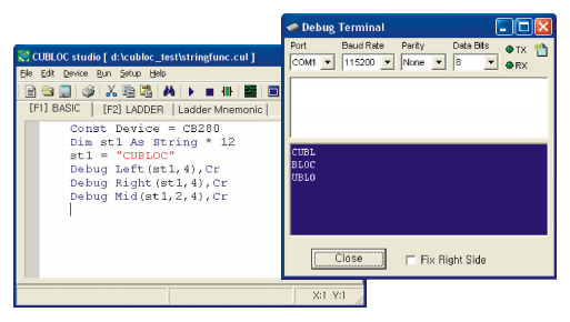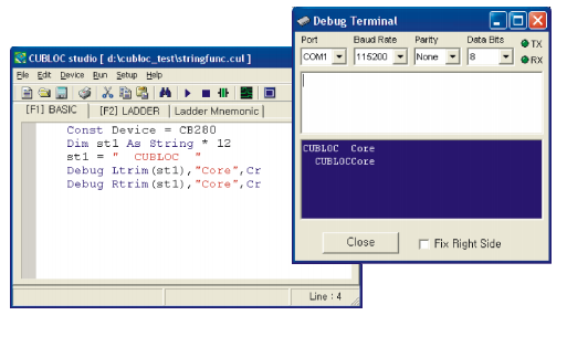 Dim ST1 As String * 12 ST1 = "CUBLOC" Debug Right(ST1,4) ' "BLOC" is printed.