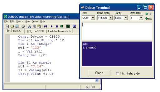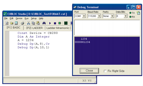 With the FP function, the user can control the number of digits to be used for string data when using Debug or displaying to an LCD.