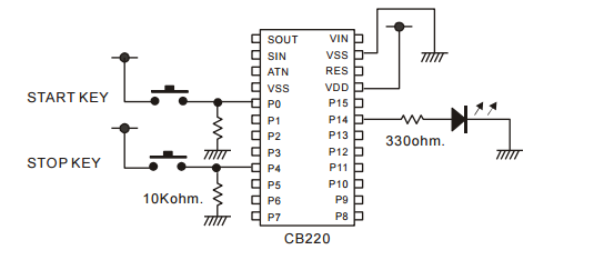Const Device = cb220 Dim a As Byte Do If KeyInH(0,20) = 1 Then a = 1 If KeyInH(4,20) = 1 Then a = 0 Out 14,a Loop