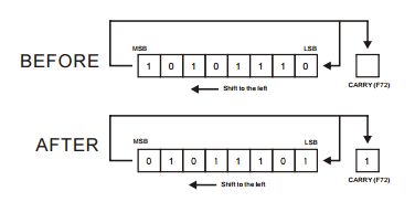 This commands rotates the bits in d 1 bit to the left (least significant bit to most significant bit). Bits on the far left are appended on the far right. WROL operates on word values and DWROL operates on double word values.