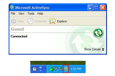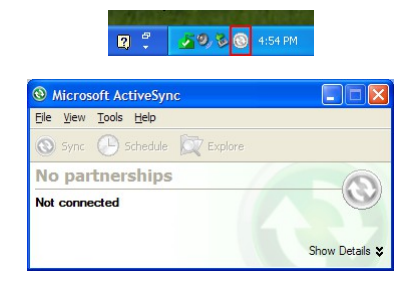 6.ActiveSync is now installed, and you should see the ActiveSync icon in your system tray. If you double-click the system tray icon, the ActiveSync window will display showing a status of “Not Connected.”