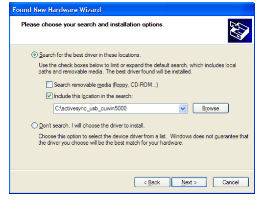 1. Download the “ActiveSync USB Driver [CUWIN5000 series]” file from the Comfile Technology website at http://www.comfiletech.com/pages/support.html, and unzip the file to a folder of your choosing.