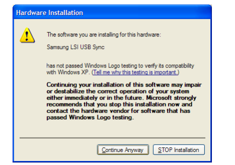 6. When it locates the driver, it will display a dialog box as shown above. Click the “Continue Anyway” button.