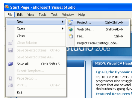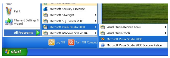 1. Start Visual Studio 2008 by selecting it from the Start Menu.