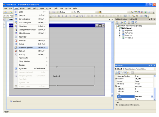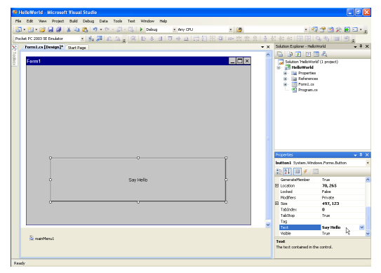 11. In the “Properties” Window change the “Text” property to “Say Hello” and press the “Enter” key.
