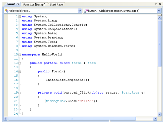 12. Now, double-click on the button and you will be taken to the button's event handler. It is here