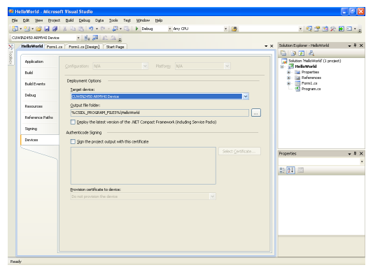 16. If a “Deploy HelloWorld” dialog is displayed, choose “CUWIN2450 ARMV4I Device” from the