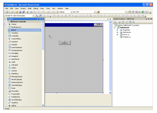 will open. Select or drag a “Button” to the form. A new button labeled “button1” will appear on