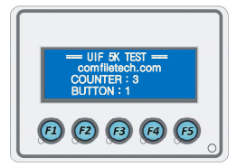 The UIF-5K is a user interface panel with an character LCD and 5 input buttons that can be used with any RS-232 capable device, including the FADUINO.