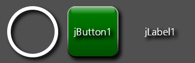 Many jControls have additional properties to introduce lighting effects, namely Gloss and DropShadow. Gloss is unique to fills, but DropShadow can be applied to fills and borders.