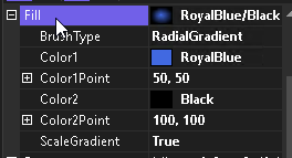 The Fill property can be used to set the background appearance using solid colors, and 2-color gradients. It is described in detail at Fills and Borders.