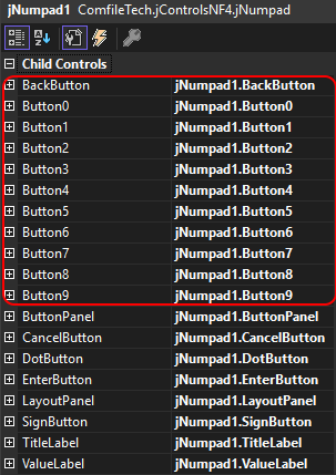 The jNumpad control has 15 buttons, each of which are exposed as properties.