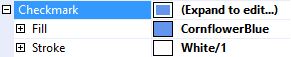 The CheckedAppearance property describes the appearance of the checkmark inside the checkbox. Please see Fills, Strokes, and Borders for more information on how to adjust these properties.