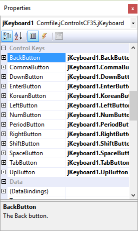 Each of the individual buttons (keys) are exposed as properties, so they can be customized at design time or runtime.