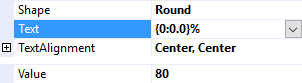 The Text property is a .Net format string that specifies the text to display on the control. The only argument, {0}, is the value of the Value Property.
