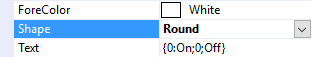 The Shape property can be used to select the overall shape of the slider: Rectangular or Round