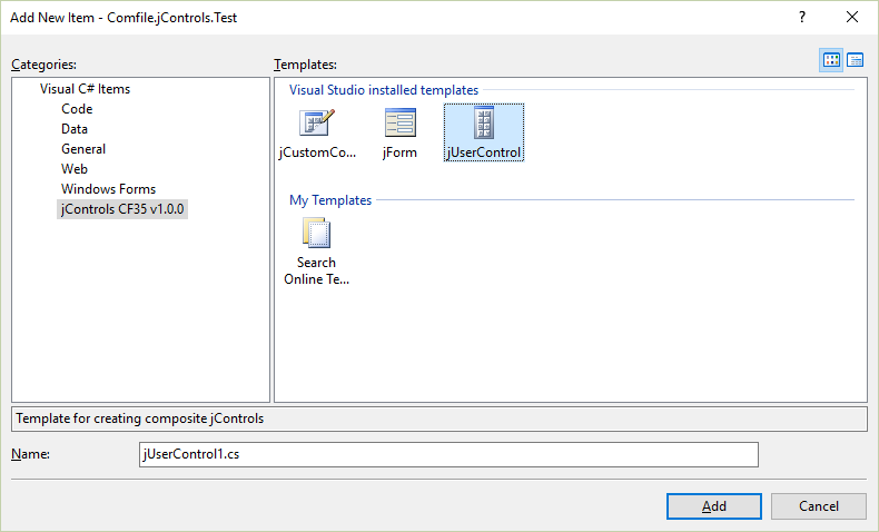 To create a new jUserControl, use the Project–>Add New Item… menu, and choose the jUserControl template.