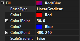 With the LinearGradient Type, the color with gradually change linearly from Color1 at Color1Point to Color2 at Color2Point. If ScaleGradient is False, the gradient does not scale with the size of the control.
