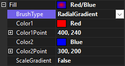 With the RadialGradient Type, the color with gradually change radially outward from Color1 at Color1Point to Color2 with an x,y radius of Color2Point. In other words, Color1Point specifies the center of the radial gradient, and Color2Point specifies the x,y radius at which the gradient spreads.