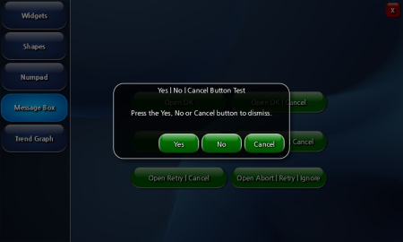 | | jMessageBox | The jMessageBox control is a composite control of jButtons and jLabels that can be used to display a message or question to the operator, and accept their response. |