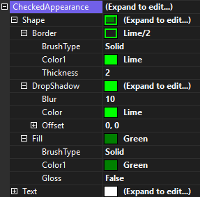 The Checkmark property describes the appearance of the checkmark that is displayed when the control is in the checked state.