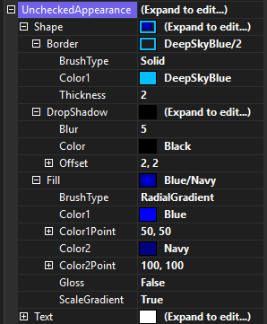 The UncheckedAppearance property describes the appearance of the check box when the control is in the unchecked state.