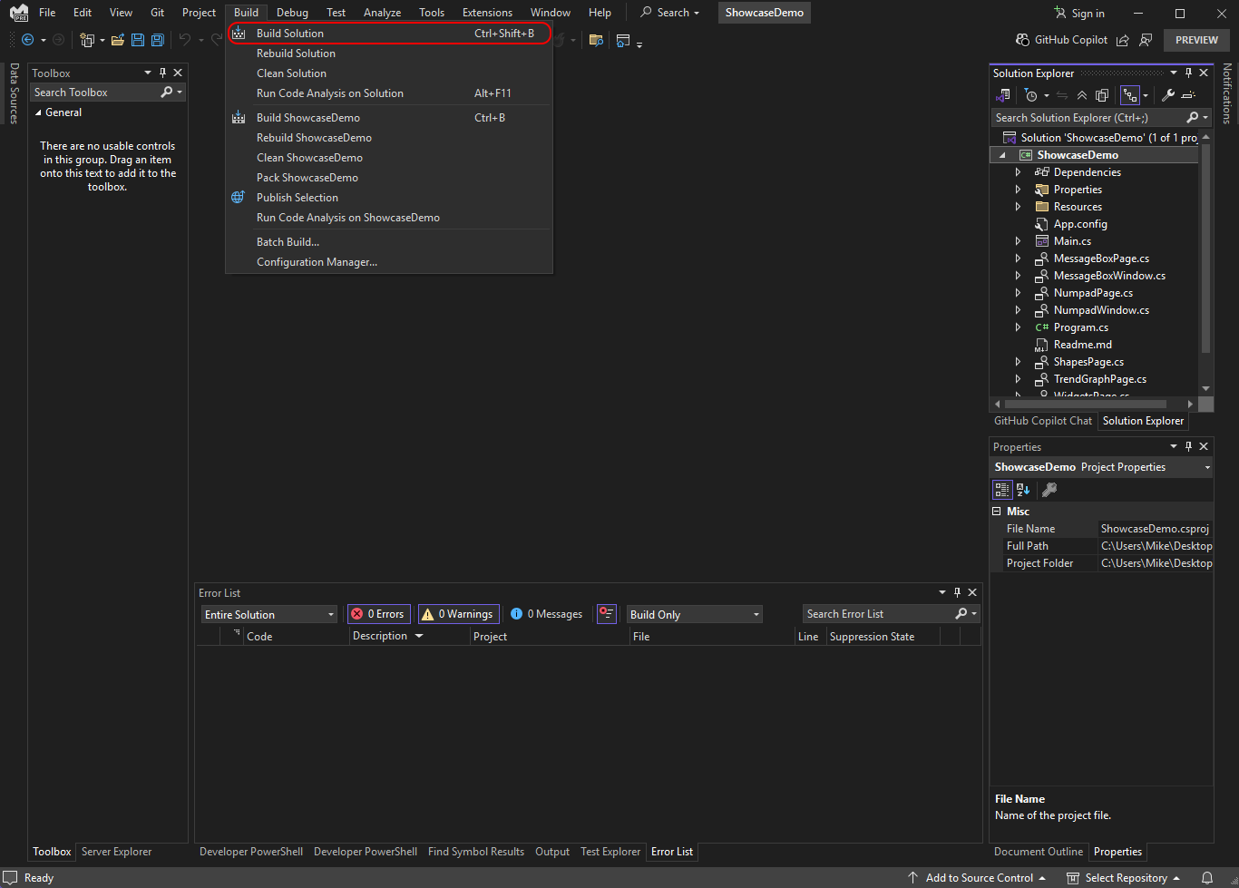After installing the project templates from COMFILE Technology's Nuget feed, as described in Setting up a Development Environment, you will find several project templates to help you get started. One is the jControls NF4 Showcase project template. It serves as a demonstration of the many controls in the jControls NF4 library, while also providing a convenient way to try out the library and become familiar with its features.