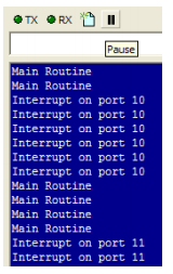 #include "moacon500.h" void cmain(void) { startExtIntEvent (10,0); //Port 10, triggerd on rising edge startExtIntEvent (11,2); //Port 11, triggered on rising and falling edge while(1) //Run forever { printf("Main Routine \r\n"); delay(1000); } } void extIntEvent(u8 extIntPort) { switch(extIntPort) { case 10: //If event was triggered on port 10 printf("Interrupt on port 10 \r\n"); break; case 11: //If event was triggered on port 11 printf("Interrupt on port 11 \r\n"); break; } }