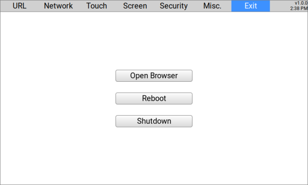 When the WebMon software is running, a special touch sequence on the screen will close the web browser and open the WebMon software. By default, that escape touch sequence is 5 consecutive touches in the top-right corner of the screen. This feature works even if the Enable Touch option is unchecked.