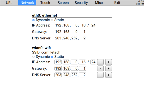 - Dynamic or Static - Choose between dynanmic configuration (DHCP) or static configuration.